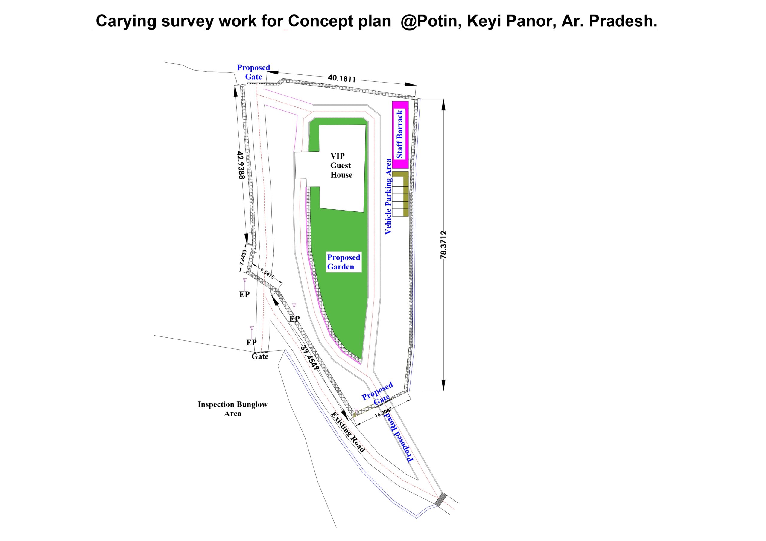 This project involves carrying out a detailed survey and developing a concept plan for infrastructure at Potin, Keyi Panor, Arunachal Pradesh. The plan integrates residential, administrative, and utility facilities with supporting infrastructure to ensure functionality, accessibility, and long-term sustainability.